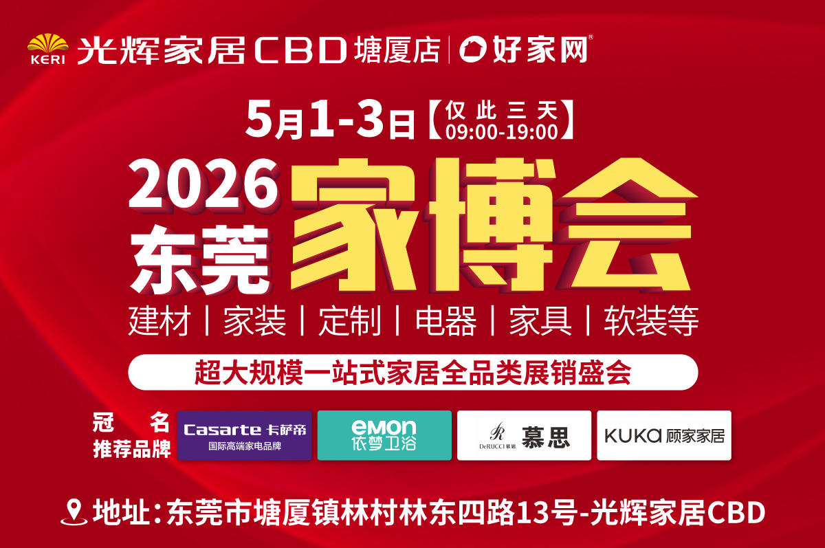 东莞超大规模、一站式家居全品类展销盛会,免费派2000份到场礼,免费领各品牌满减券,快定送300台落地扇,狂砸1500个豪礼金蛋,狂抽全屋家电大奖,还有冠名品牌专属打卡礼......优惠尽在5月1-3日举办的【2026东莞家博会】大型促销活动,仅此3天,免费报名获取入场门票。
